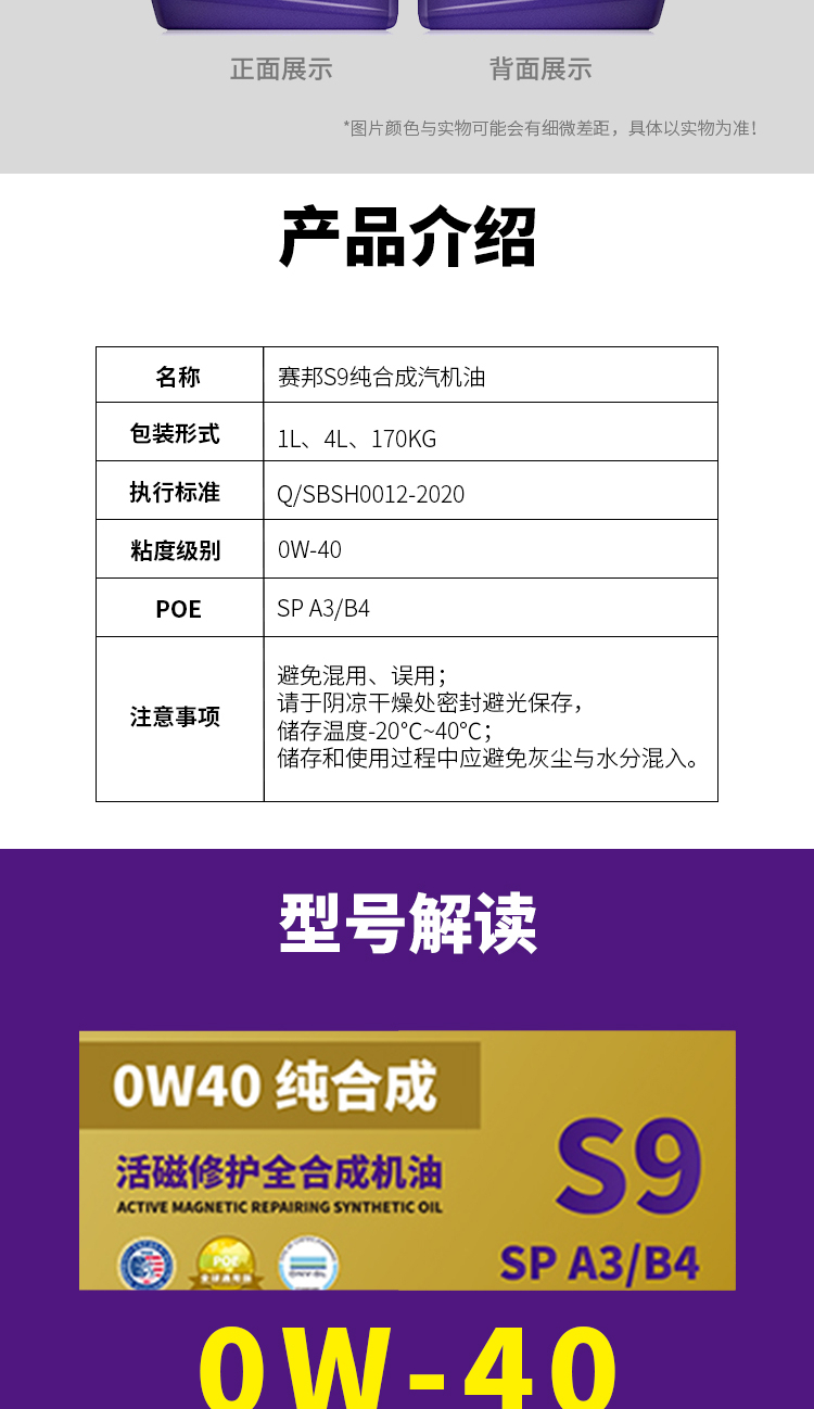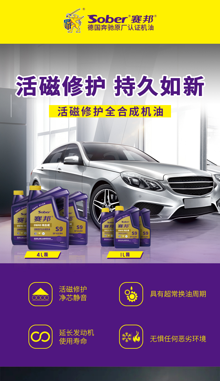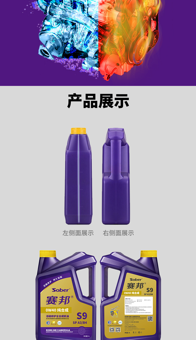 » 赛邦sober 纯合成机油S9 SP级 0W40 4L